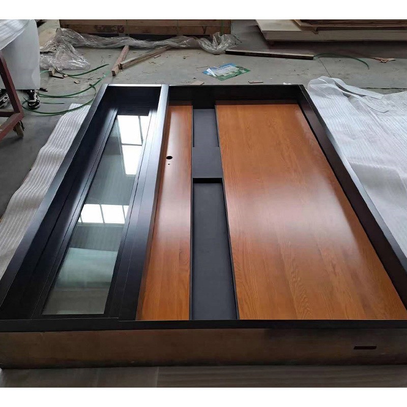 GuangzhouNew Exterior Steel Wood Entrance Pivot Door With Glass Sidelites